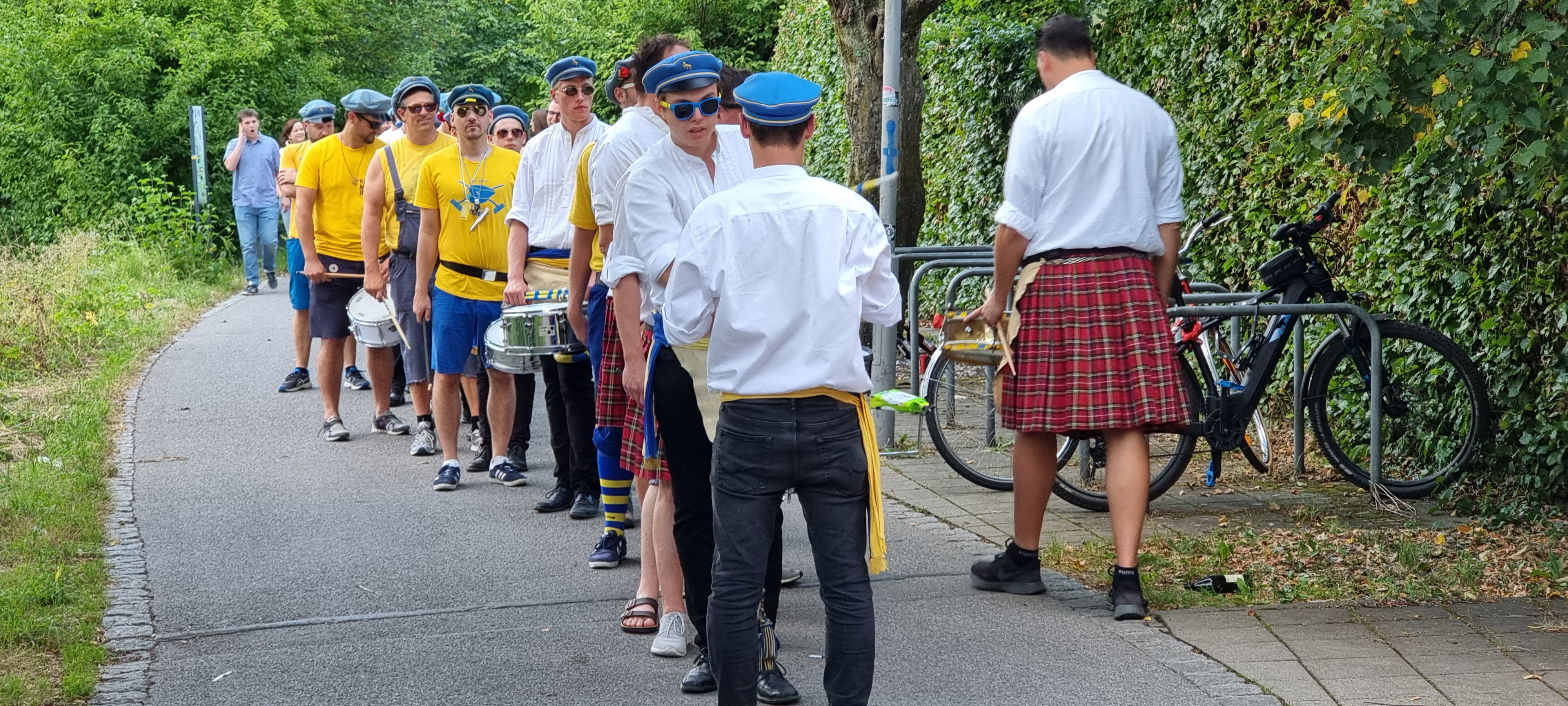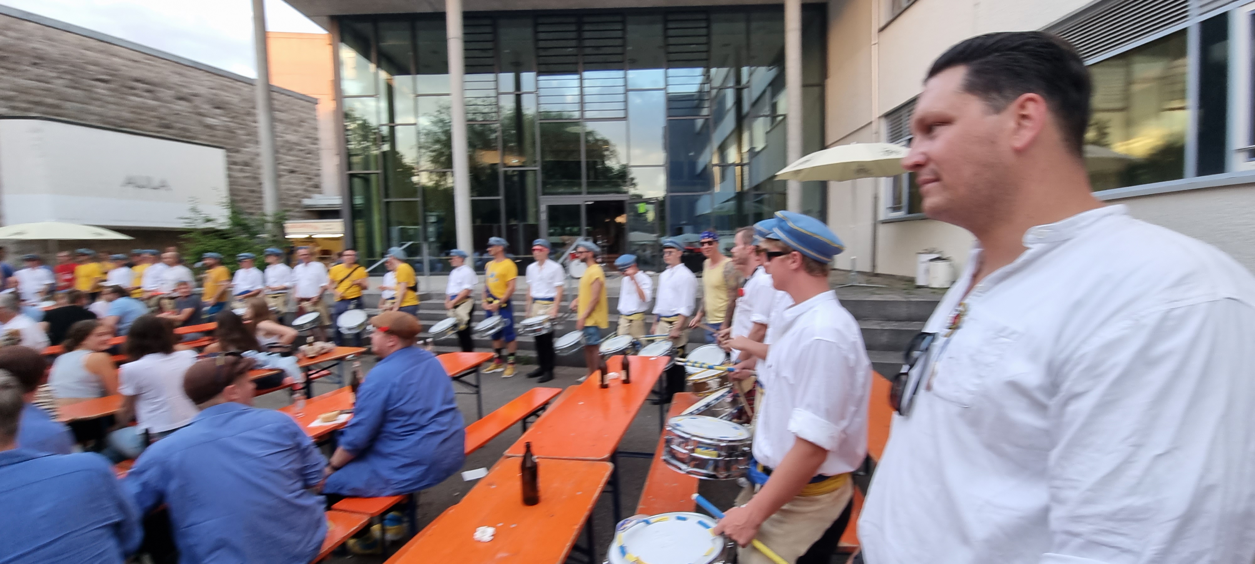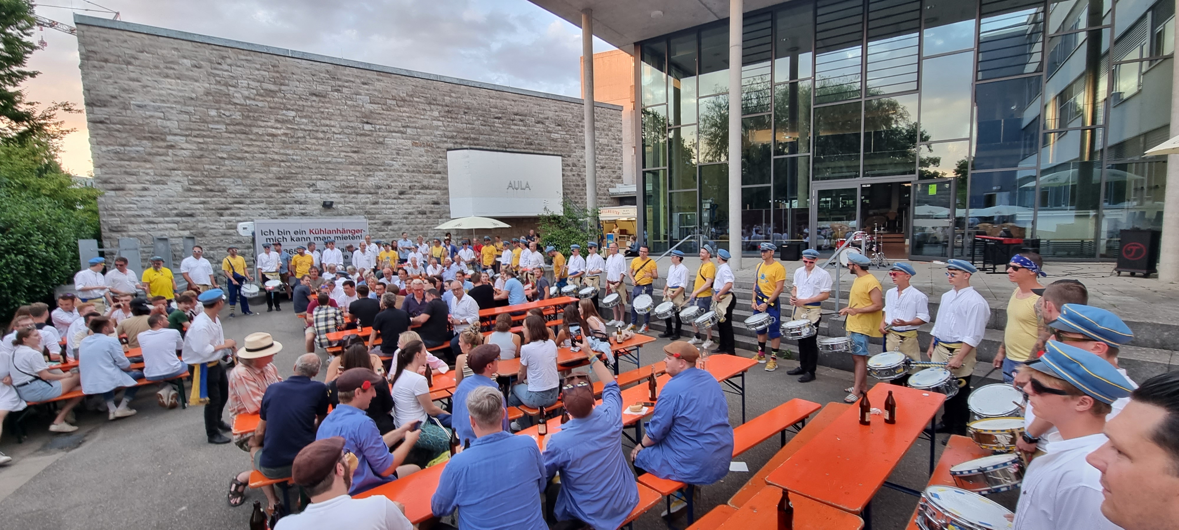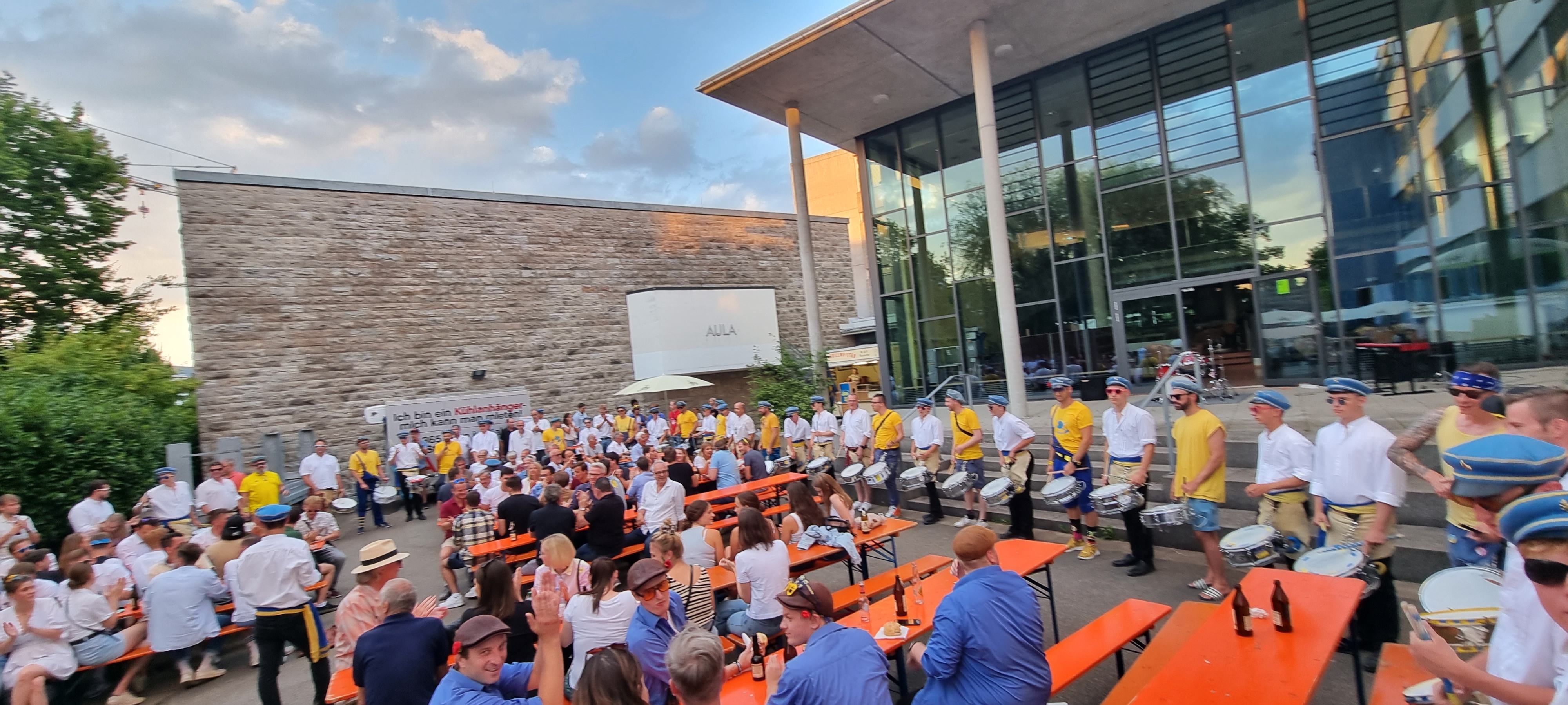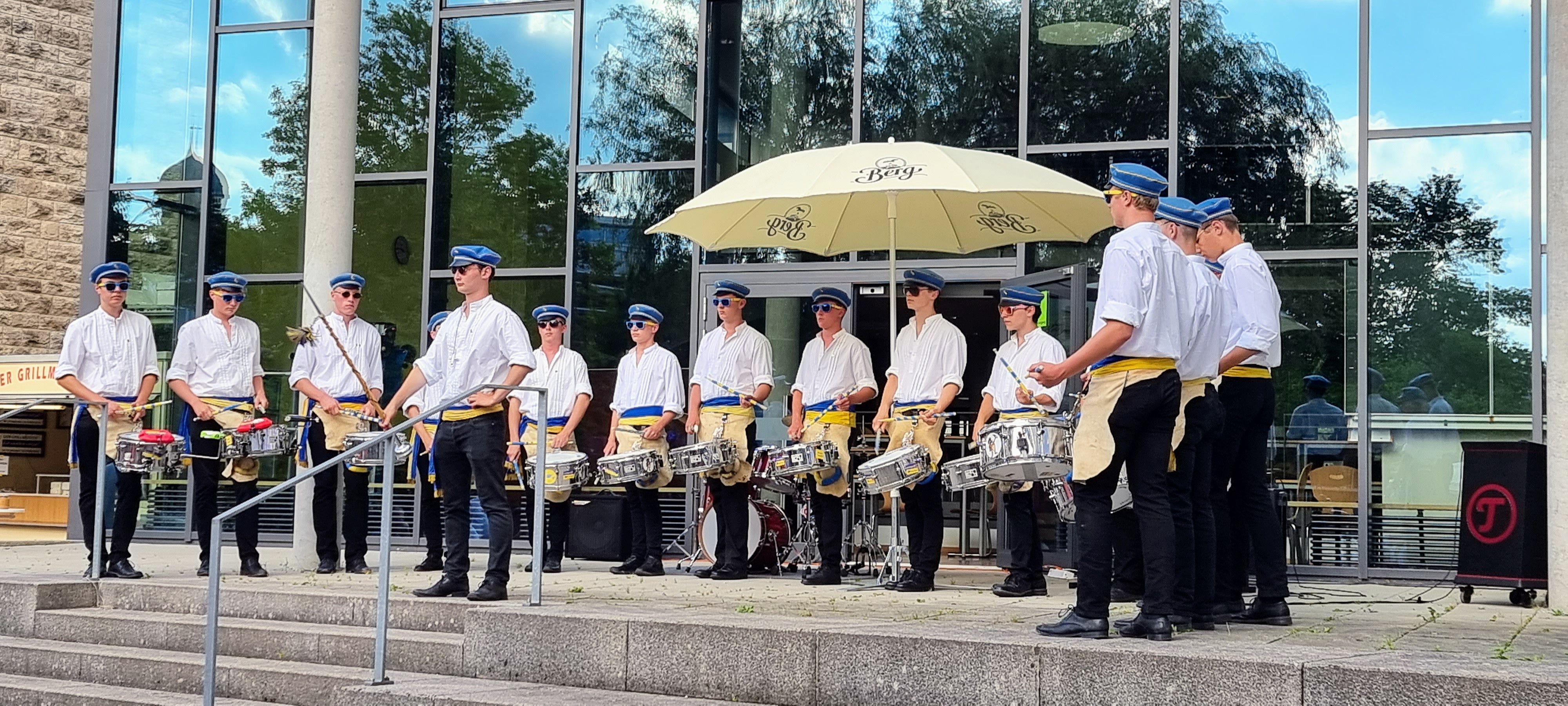 1922 entstanden die WG-Trommler - 2022 wäre so das 100-jährige Jubiläum gewesen. Aufgrund der Corona-Pandemie war dies nicht möglich. Dann halt noch eins draufgesetzt: 100+1 Jahre-Jubiläum mit einem WG-Trommler-Fest für alle Ehemaligen und Feudne der WG-Trommler auf dem Nordhof des Wieland Gymnasiums in Biberach. Es war lange in der Schwebe, ob es Pandemie-bedingt überhaupt möglich ist, die Entscheidung dafür war nur etwas kurzfristig möglich. Unser Dank dafür geht an die Schule und insbesondere an Steffen Püschel für die ganze Arbeit und Organisation. Es war ein großartiger Abend.